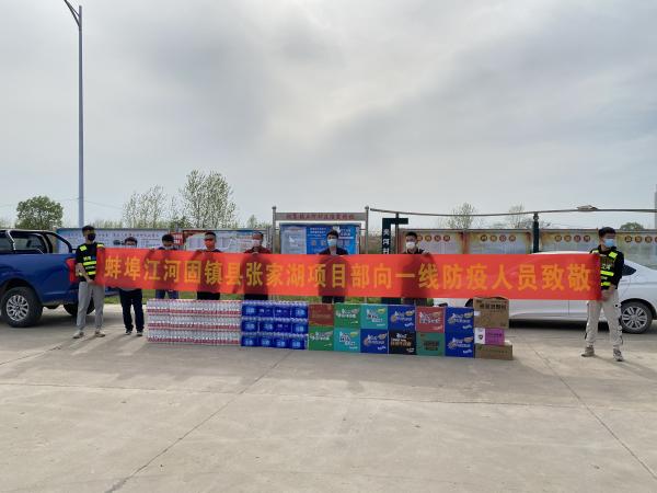 4月9日固鎮(zhèn)縣張家湖施工1標(biāo)慰問一線防疫人員