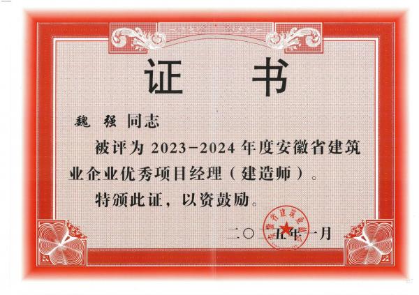 近日,2023-2024年度安徽省建筑業(yè)企業(yè)優(yōu)秀項目經(jīng)理(建造師)名單公布,蚌埠江河公司安徽省懷洪新河水系洼地治理工程固鎮(zhèn)縣張家湖片等治理工程總承包項目張家湖泵站工程項目經(jīng)理魏強榜上有名,這也是蚌埠江河公司員工首次獲得此項榮譽。
